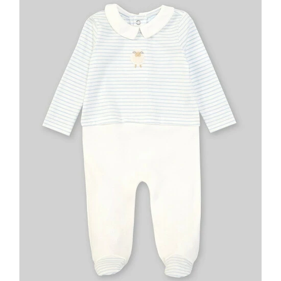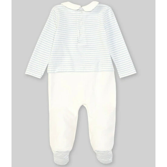 - Toe caps and foot bottoms are also in the blue/white stripe fabric.