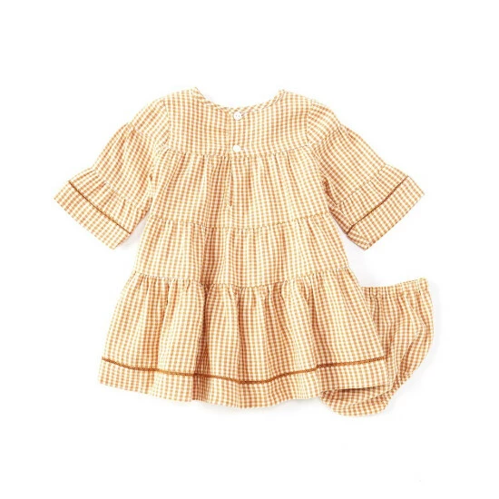 - Gold checked tiered dress