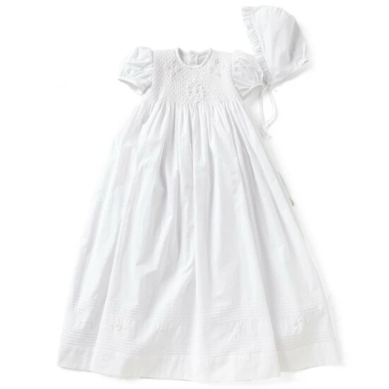 - stretch smocking enables gown to fit several sizes
