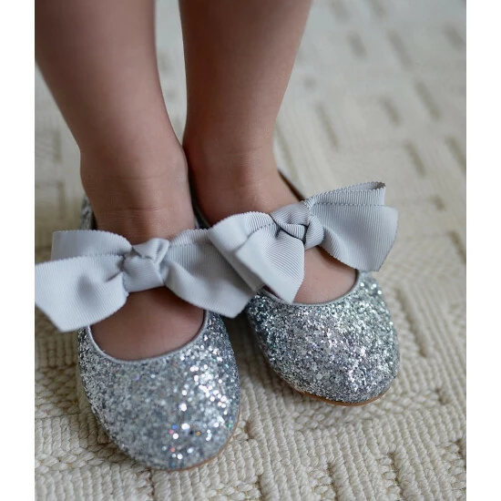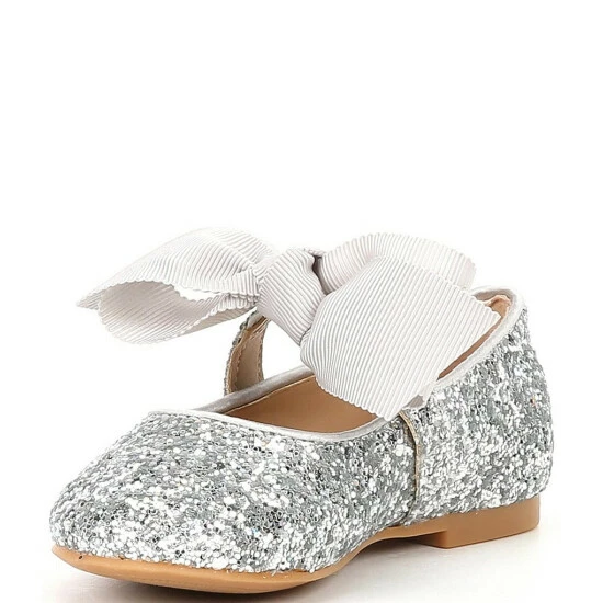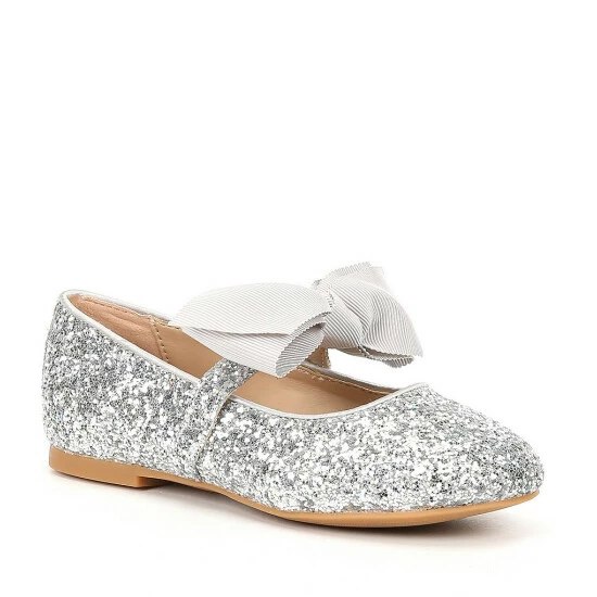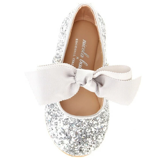 Best Pirce πŸ˜€ Edgehill Collection X Nicola Bathie πŸ‘§ Girls’ Isabella Bow Slip-On Glitter Flats (Toddler) Silver 😍