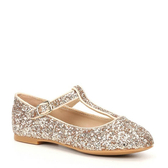 From Edgehill Collection X Nicola Bathie, the Girls’ Sloan T-Bar Glitter Flats feature:Β